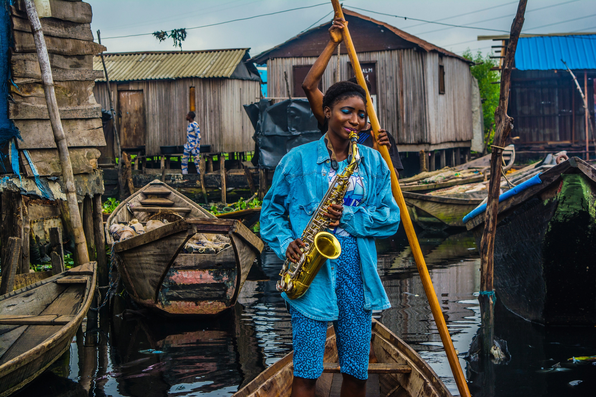Nearly all African cities have slums and ghetto communities with an abundance of young talented people who are arguably an integral part of the city and its future. Despite the limitations placed on the young people from these communities, the energy of these young people never fails to prevail. The will to improve themselves and their communities which in turn impact the city as a whole. In 2019 I set out to two of the popular slum communities in Lagos called Oko Agbon and Makoko. These communities are at the centre of the city and it was there that I created these images. Together with these talented young people, we projected new possibilities in the neighbourhoods looking at the bright side from the angle of Technology, education, music and modelling in connection to their existing way of life in the slum and the urban space.
